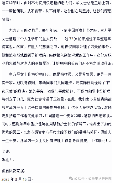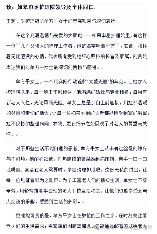 初夏的微风轻拂,5月19日,如皋申丞护理院、如皋申丞博爱康复医院隆重召开第一季度岗位标兵表彰大会。全院优秀员工登上荣誉舞台,他们以专业能力和日复一日的默默付出,为长者的健康与生活品质筑牢温暖防线。这不仅是一次对个人贡献的肯定,更是全院上下坚守初心的缩影。