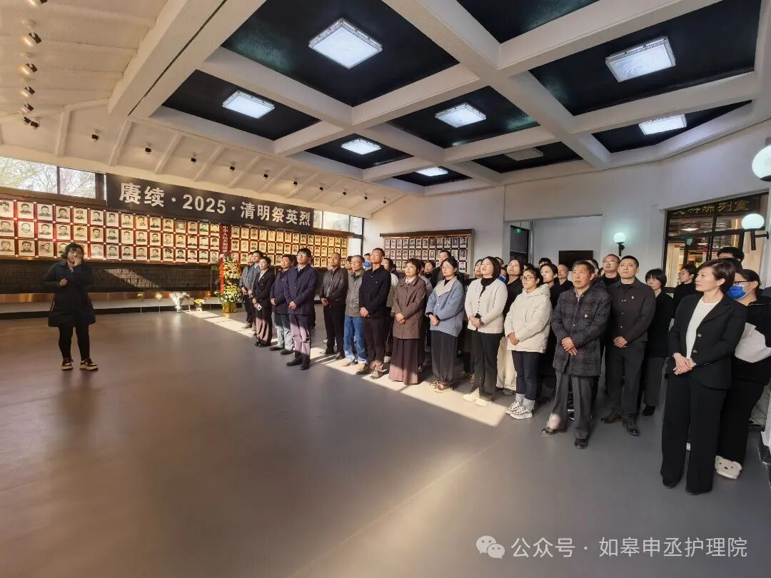 清明追思祭忠魂,红色基因永传承。4月2日下午,在江苏华医大健康集团公司党委的组织下,如皋申丞博爱康复医院、如皋申丞护理院全体党员、中层干部走进如皋烈士陵园、如皋红十四军纪念馆举行“传承红色基因、争做康养先锋“清明祭扫活动,以庄严肃穆的祭扫仪式致敬革命英烈,在重温红色历史中凝聚奋进力量,让医者仁心与革命精神同频共振。 烈士陵园苍松肃立,翠柏凝春。全体人员脱帽肃立,向长眠于此的英烈行三鞠躬礼,以无声的仪式追思先烈用热血铸就的信仰丰碑。