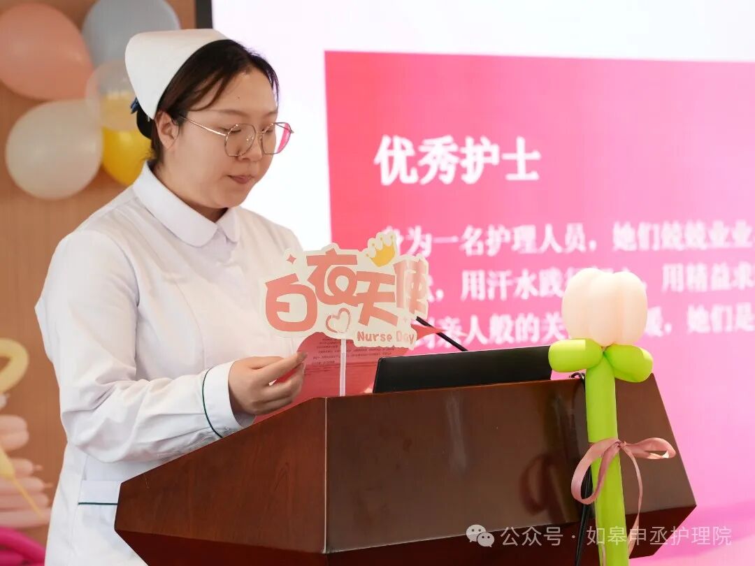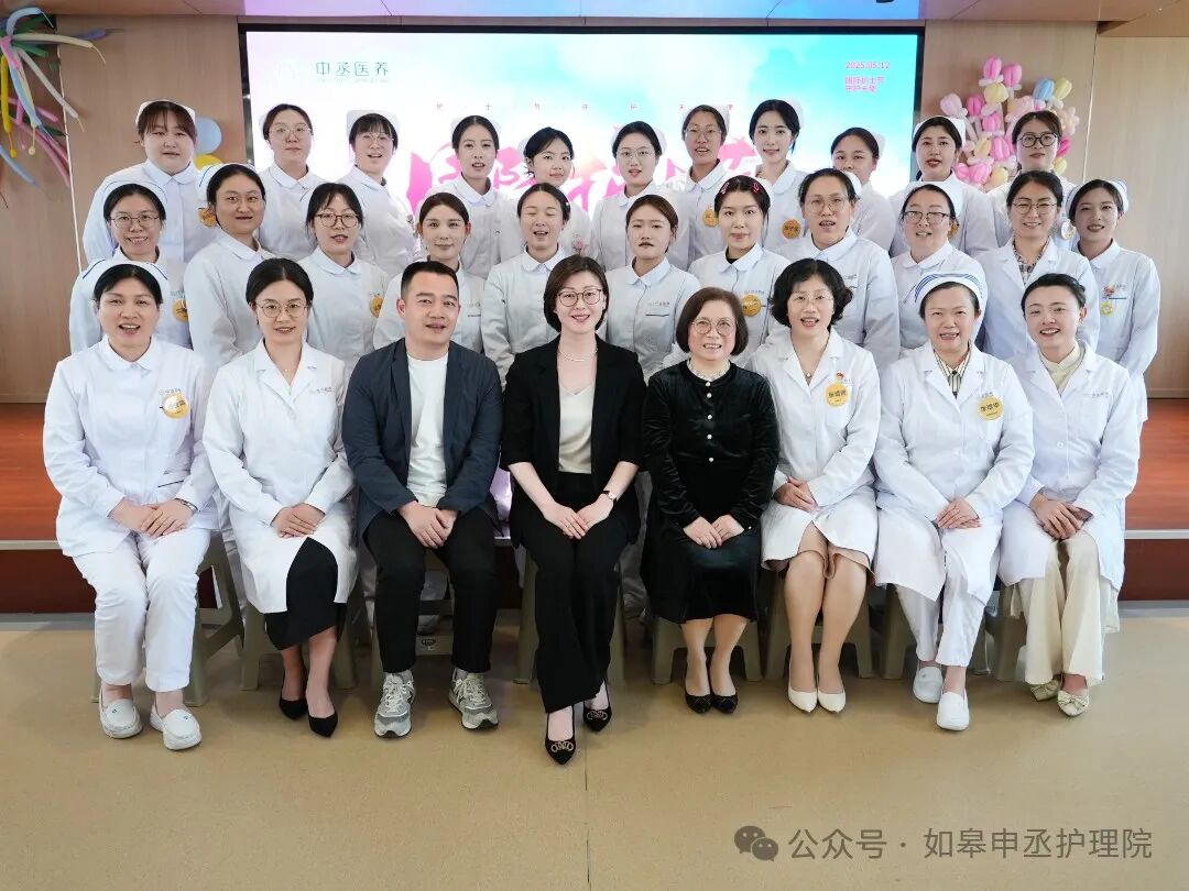 开场播放由院部精心制作的《守护时光的人》护士节特辑视频,展现了护士们工作的真实感悟,以及各岗位对护理工作同仁们的真诚祝福,现场氛围瞬间升温。 如皋申丞博爱康复医院、如皋申丞护理院院长沈爱娣女士登台致辞,“护理工作是‘左手紧握专业,右手托起人文’的双重使命。”沈院长在致辞中动情说道。她首先向全体护士鞠躬致谢:“无论晨昏寒暑,你们用脚步丈量病房的冷暖,用双手托起生命的重量。每一例精准的护理操作,每一句温暖的病床问候,都是医者仁心的最好诠释。”