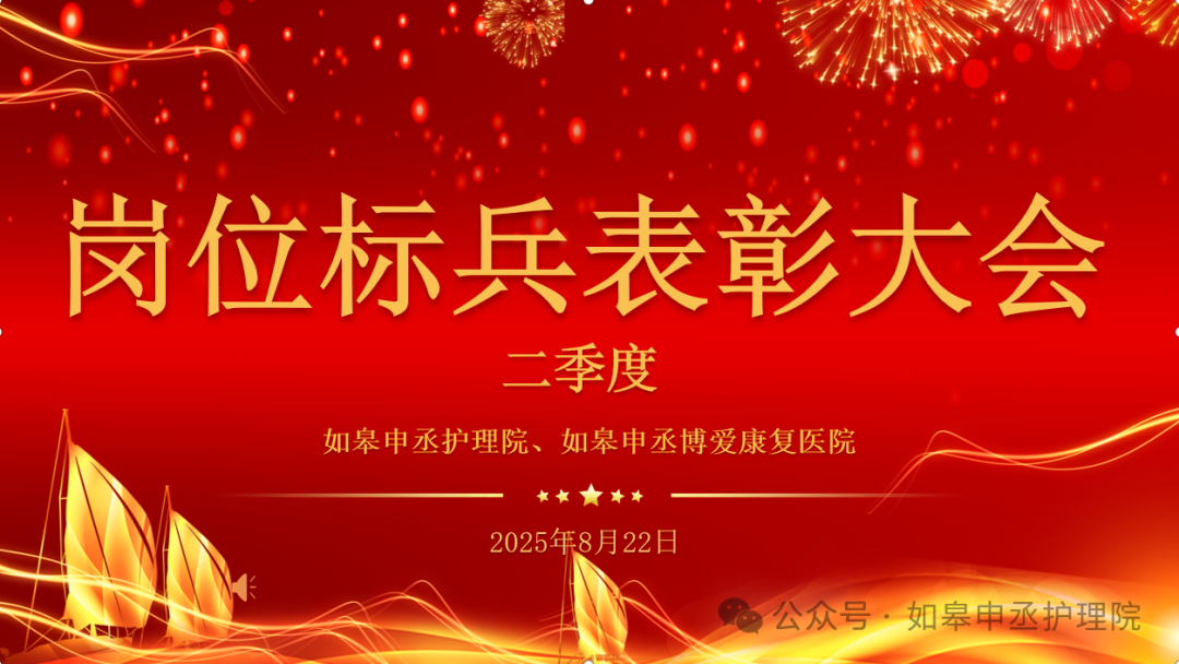 2025年8月22日下午 如皋申丞护理院 2025年第二季度岗位标兵表彰大会隆重举行 院领导、各部门负责人及全体员工齐聚一堂 共同见证这一荣耀时刻